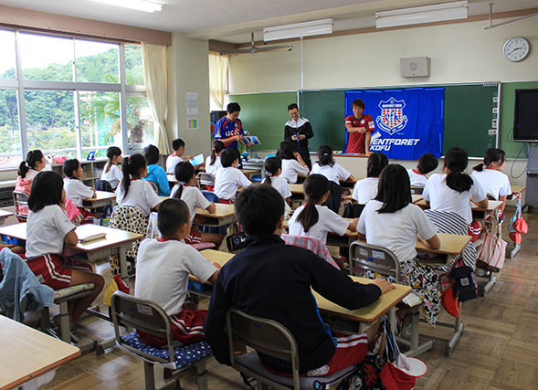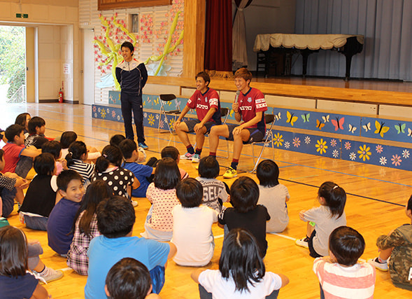 ホームタウン活動の一環として、ヴァンフォーレ甲府の選手が小学校を訪問し、児童とのふれあい活動を通じて、ホームタウンの子どもたちの夢を育み、健全育成に寄与することを目的とします。 |